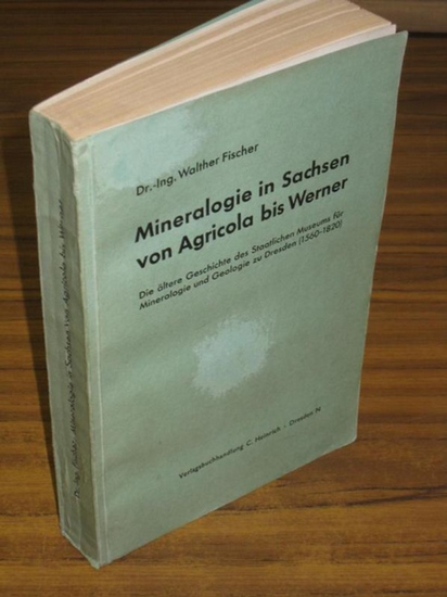 Mineralogie in Sachsen von Agricola bis Werner. Die ältere Geschichte des Staatlichen Museums für Mineralogie und Geologie zu Dresden (1560 - 1820). Dresden, C. Heinrich, 1939. Erste und wohl einzige Ausgabe. 23,7 :15,6 cm. Original-Broschur, etwas angestaubt und mit zwei Schabstellen auf dem Vorderumschlag (Siehe Foto). Die Aussenecken etwas gestaucht. Auf dem Innenumschlag mit gedrucktem Zueignungsetikett des Museums in Dresden vom Mai 1939. VIII, 347 Seiten mit 18 s/w Abbildungen im Text und 24 Tafeln incl. Frontispiz. Im Innenbereich schön sauber, fest im Block. Gutes Exemplar mit nur leichten Gebrauchsspuren. M09566.